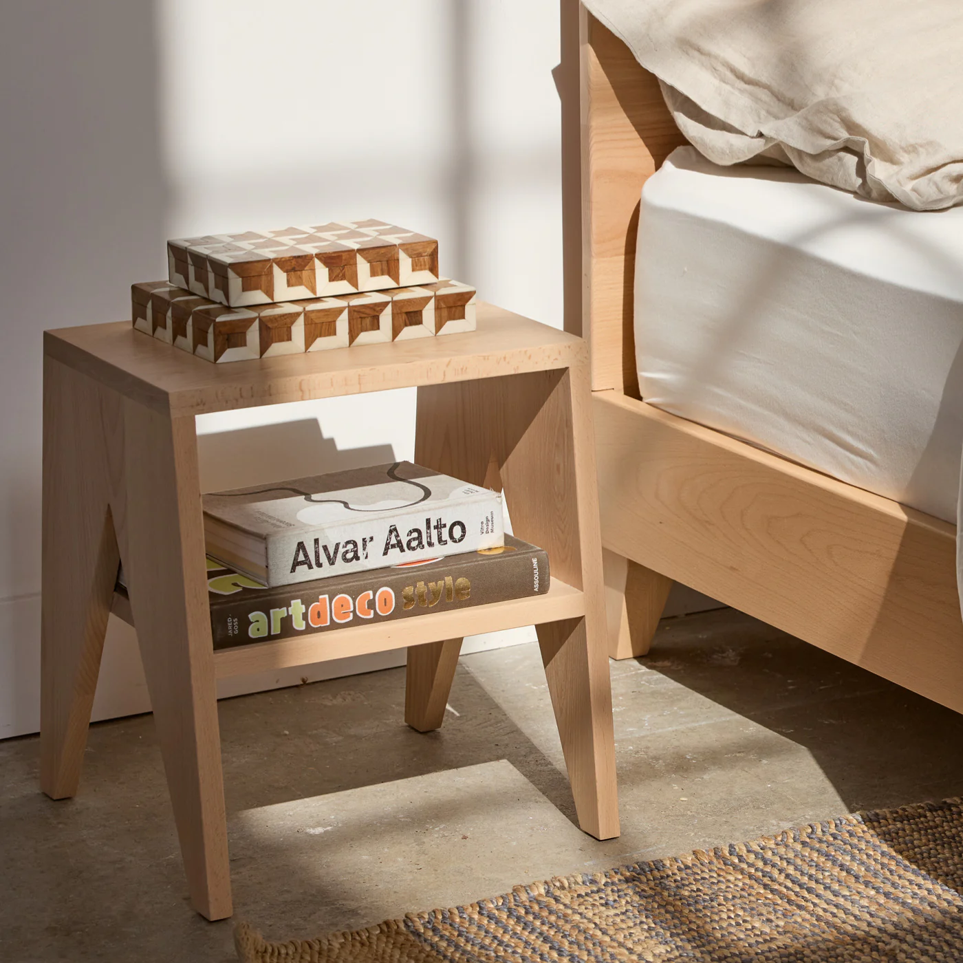The City Nightstand matches our popular City Bed Frame. The contemporary, minimalist nightstand maximizes your space and keeps tea, candles, plants, books, and other nighttime essentials close by. Made with solid, responsibly harvested wood in our FSC®-certified woodshop. We finish the nightstand with an ECOS® clear varnish. The nightstand ships assembled.