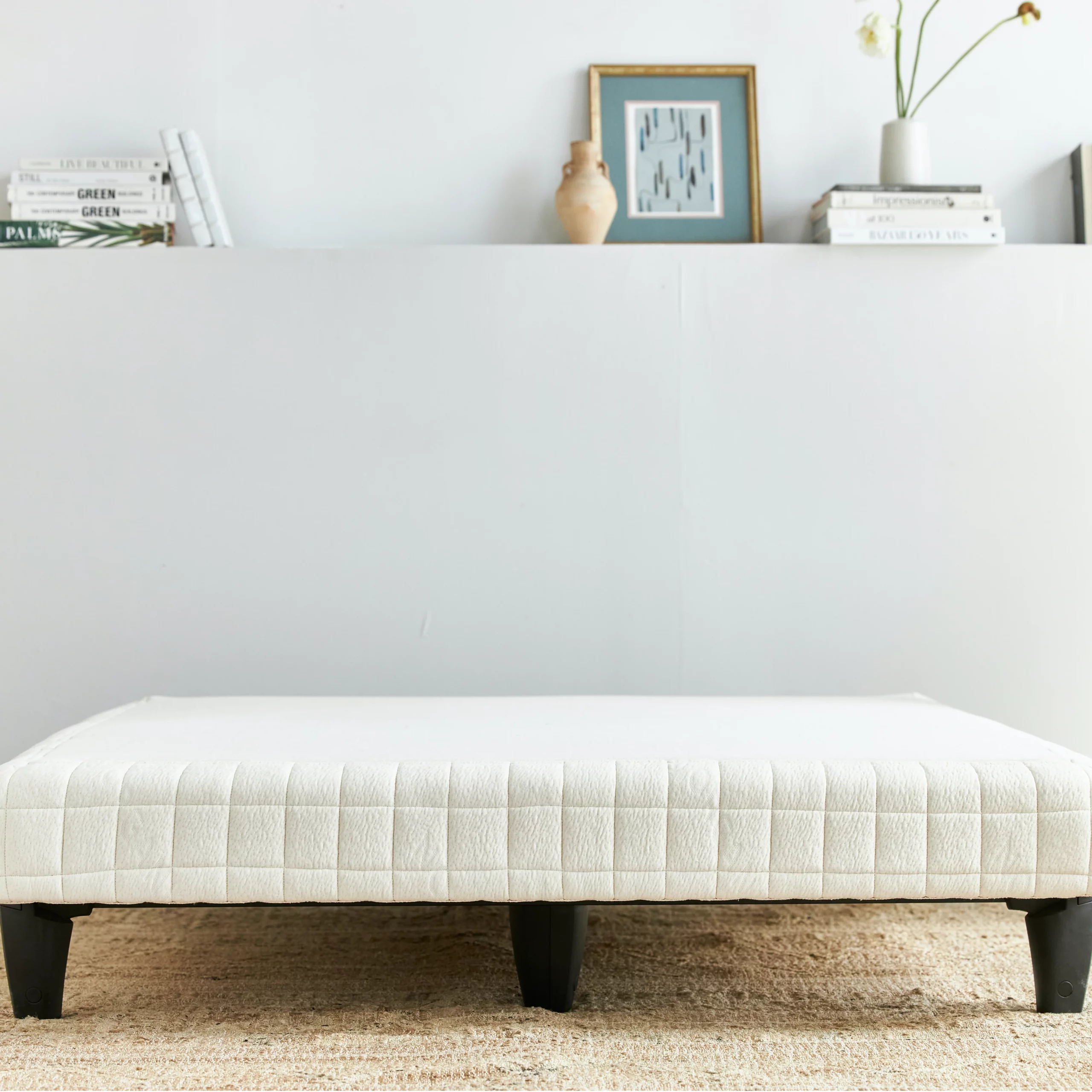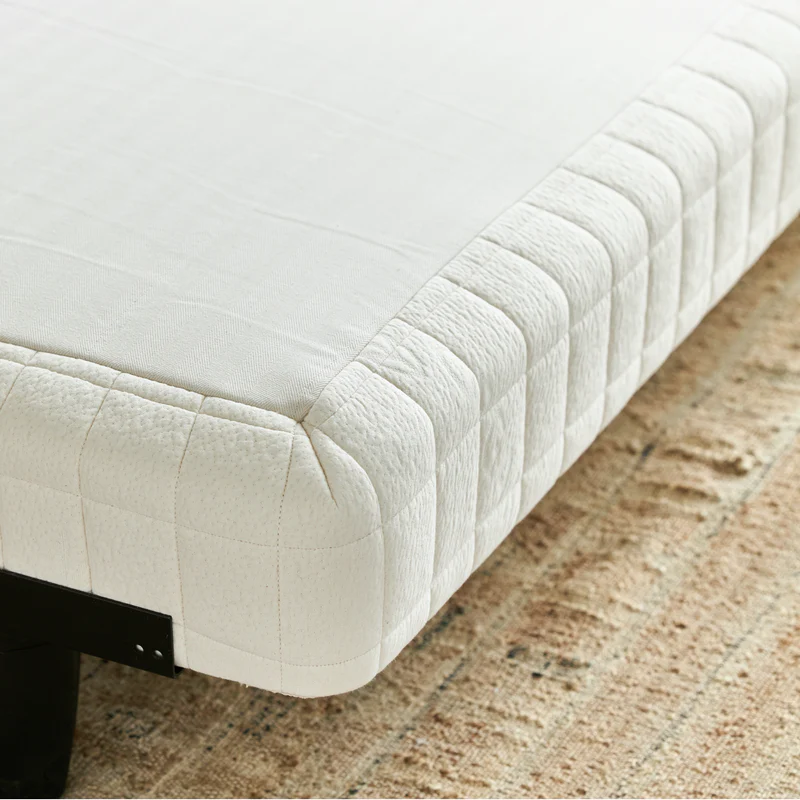 Avocado crafts their Luxury Foundation in their GOTS-certified organic facility in Los Angeles. Layers of GOLS-certified organic coconut husk pads and plush GOTS-certified organic cotton, wool, and silk ensure unparalleled breathability and sustainability. A solid wood frame with more than 100 internal metal supports evenly distributes weight. Note that the foundation does not have feet.
