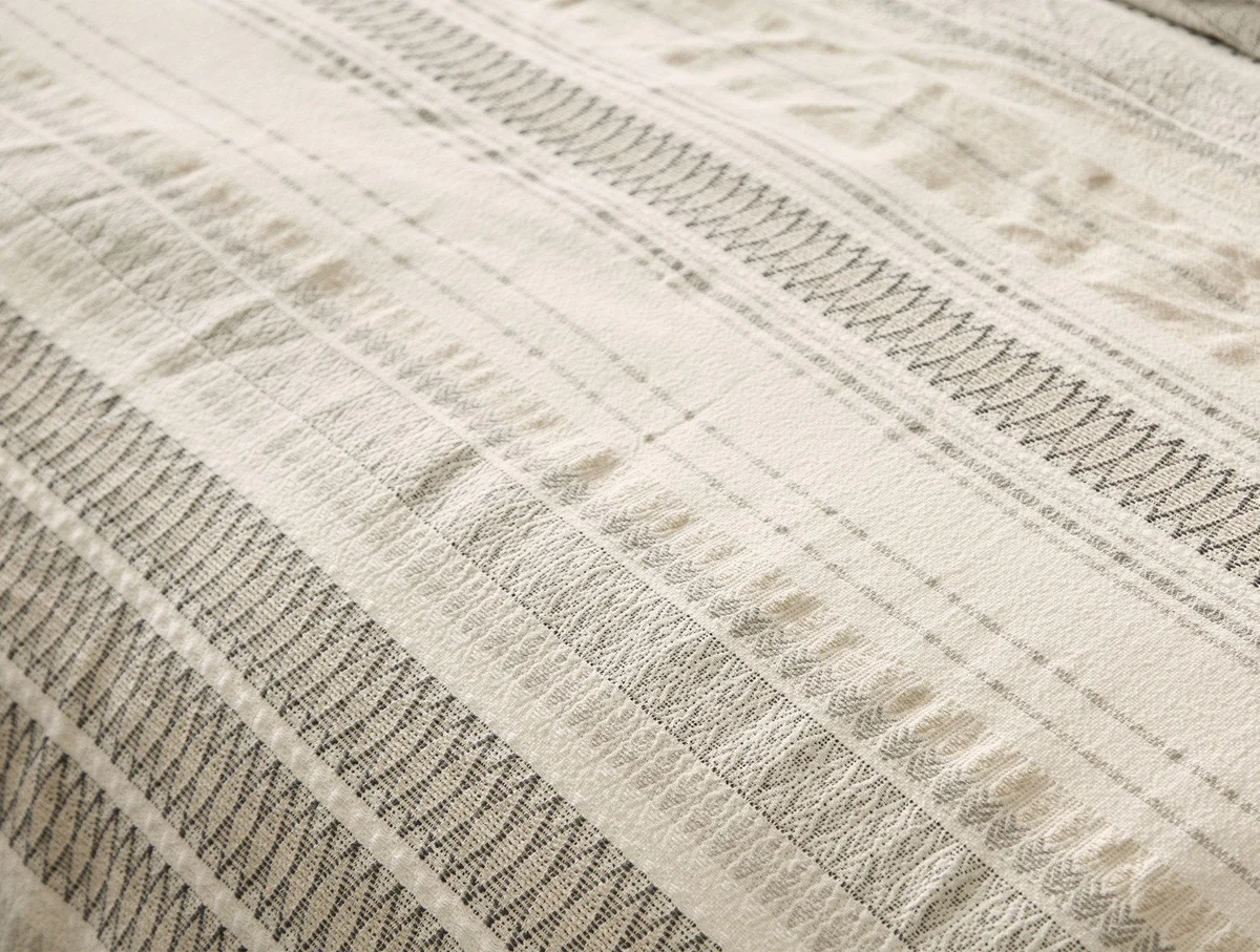 Our duvet cover’s stripes are dobby woven from yarn-dyed cotton for pleasing detail and texture and lasting quality. They’re set off and backed by undyed cotton, for a balance of crisp contrast and natural warmth. Designed for use with or without a top sheet.