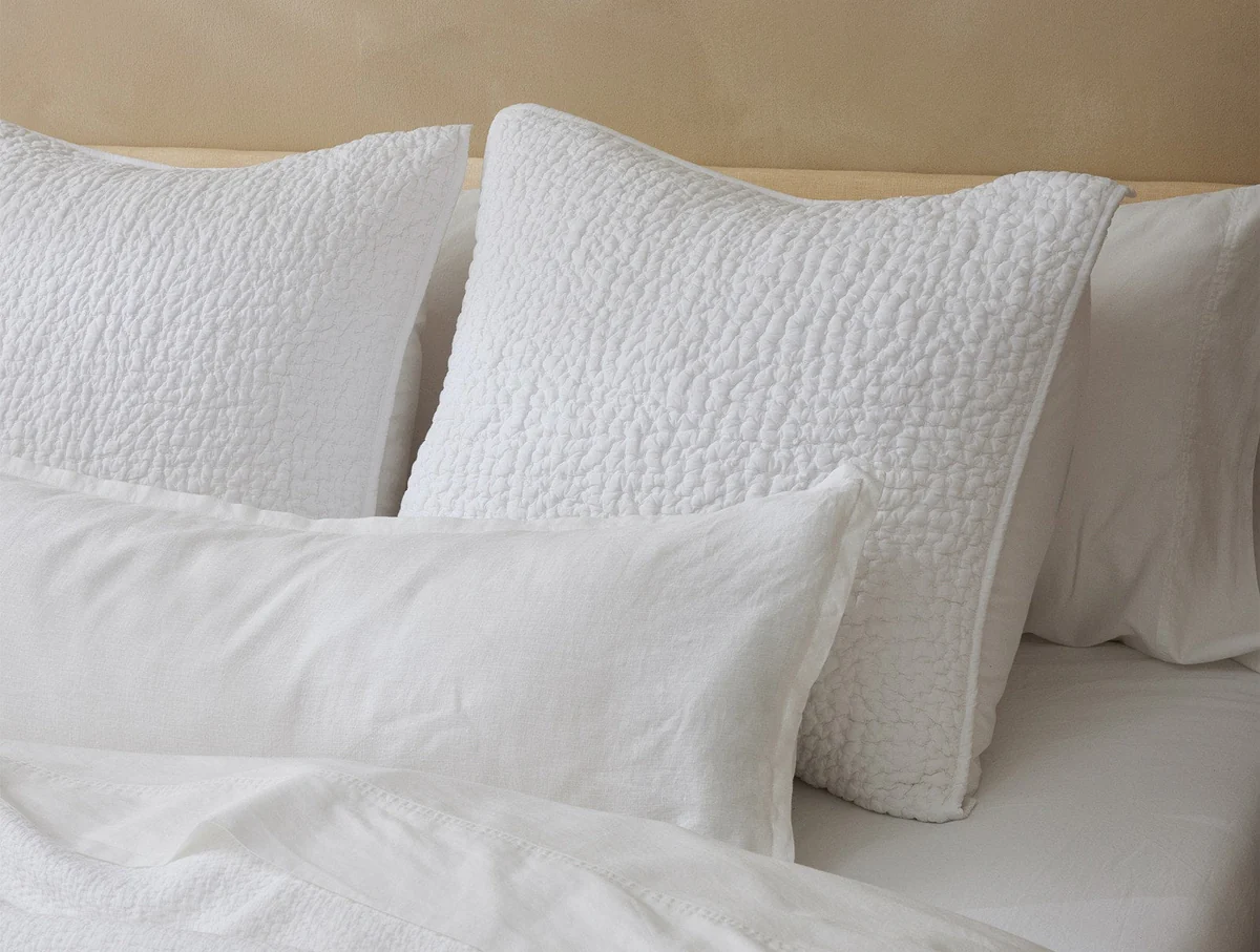 Our sham is hand embroidered with waves of tiny, contrasting stitches, for great texture and color from end to end. On the Undyed version, we’ve used multi-color thread for vibrant variation. Crafted of soft, breathable organic cotton, inside and out.