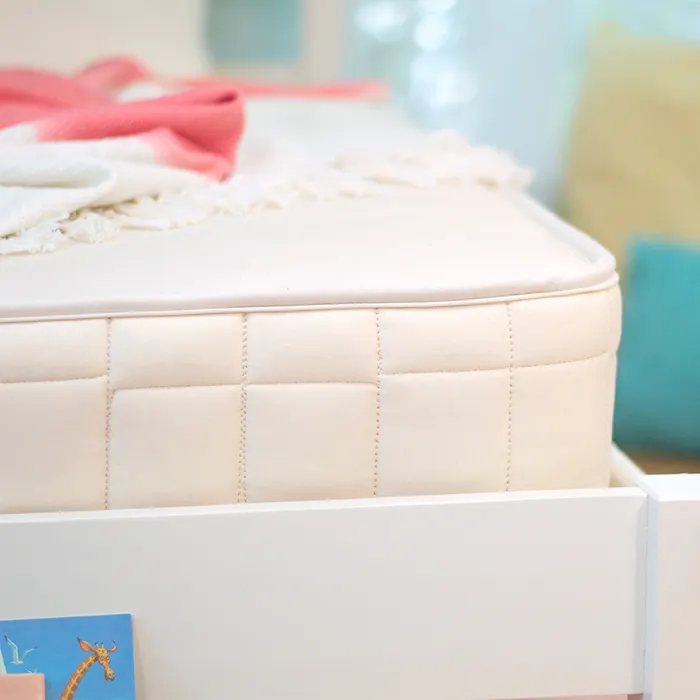 Whether your child is on the quilted side or the waterproof side, rest assured they’ll be super comfy. With generous layers of organic cotton batting over a premium innerspring unit, the 2-in-1 feels solid and supportive. This approach naturally breathes and wicks away moisture for a comfortable healthy sleep. The waterproof side is built on the firmer side to help support kids’ developing bones, while the quilted side features a plush microcoil layer for added comfort.