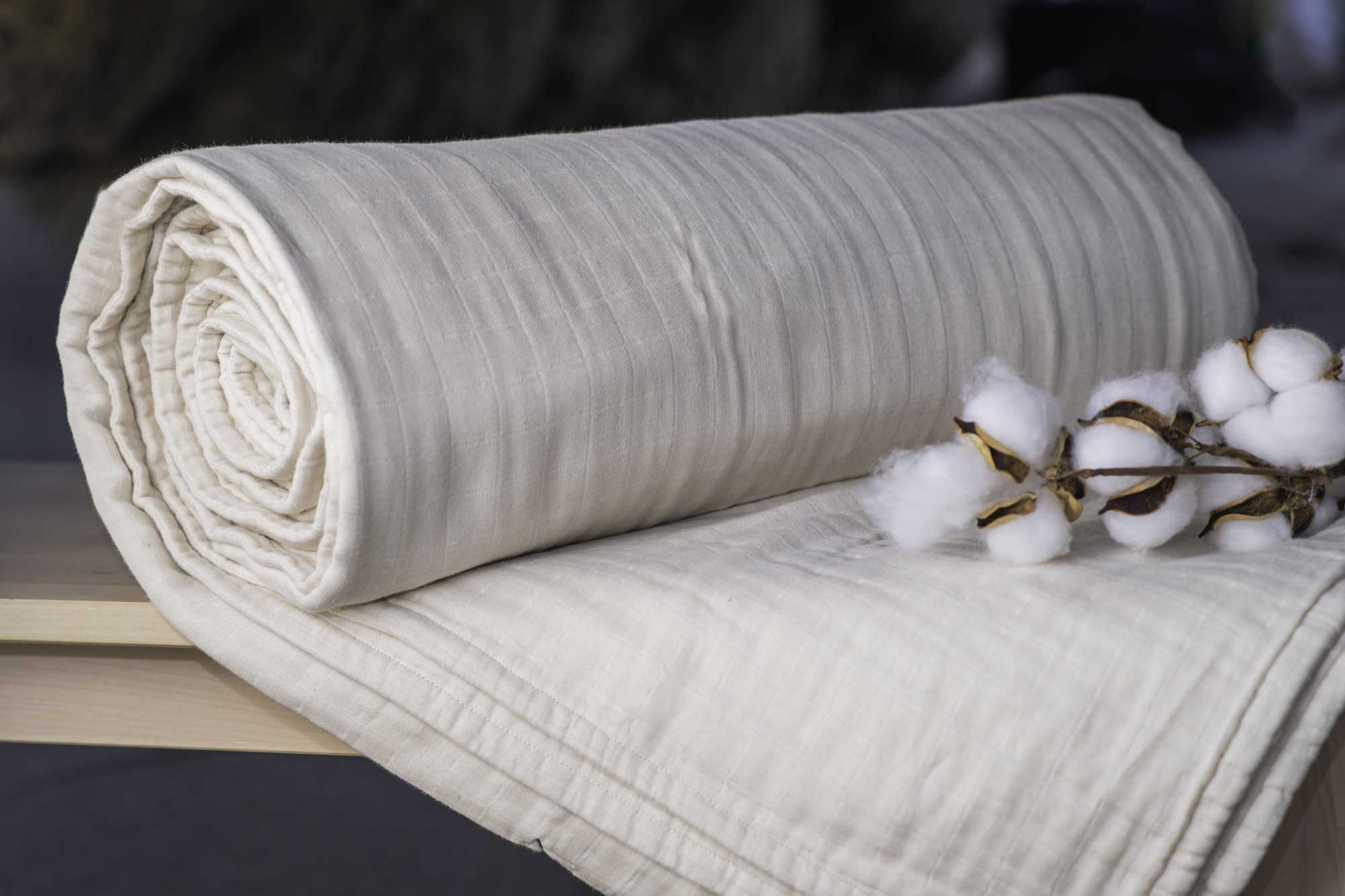 Sleep longer with our soothing blanket made of 4 layers of dreamy double gauze GOTS-certified organic cotton muslin fabric.