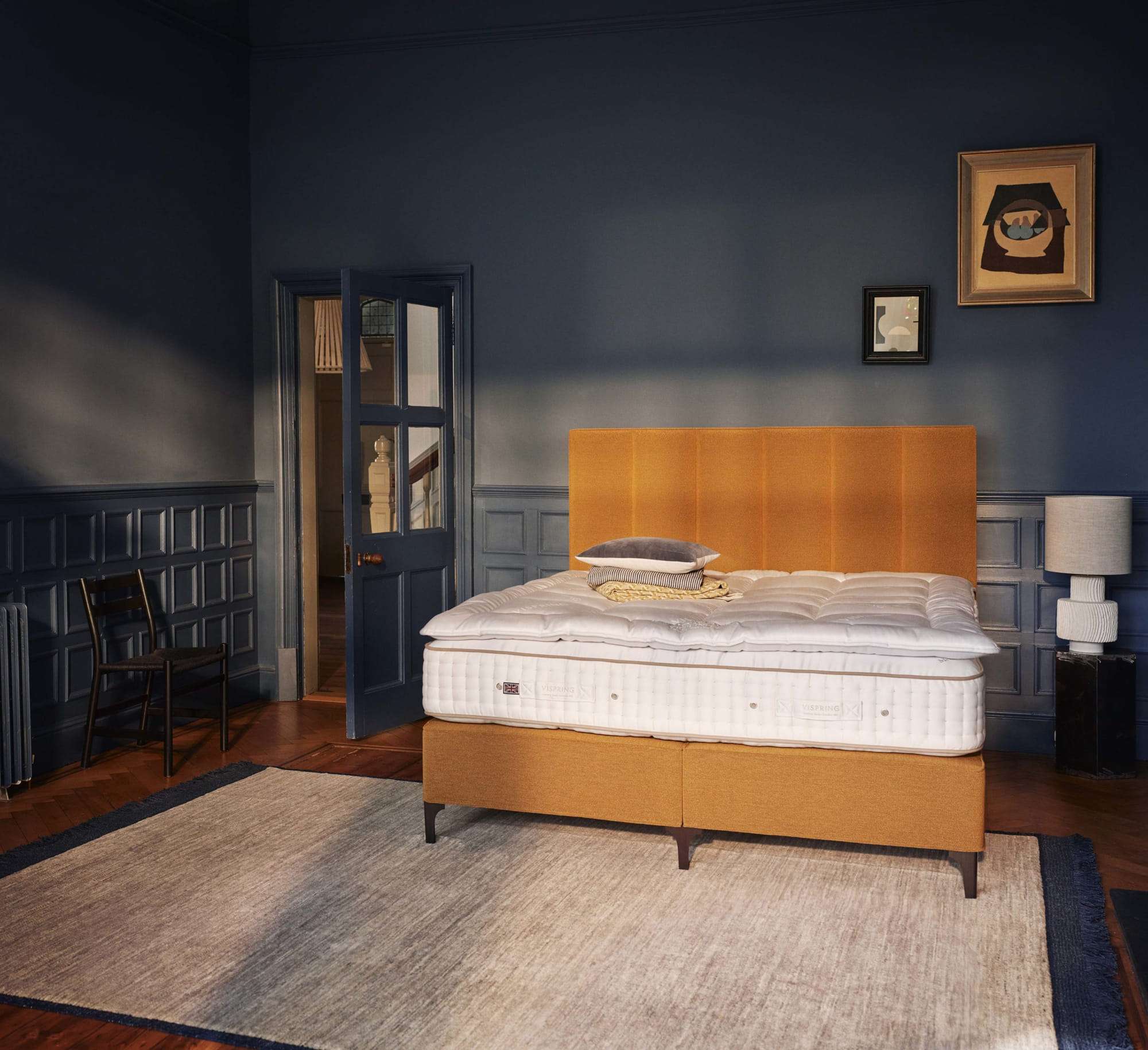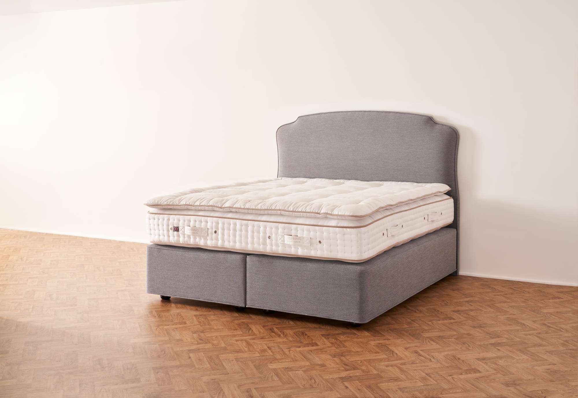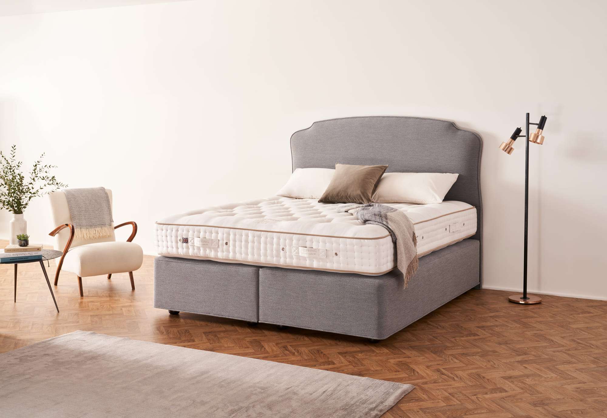 For this collection, Vispring introduces three layers of vanadium steel springs. But it’s not for show – each layer works seamlessly with the one above or below to actively support you as you sleep. It’s a sleeping system unlike anything else, creating a feeling of total weightlessness and offering an uninterrupted night’s sleep.